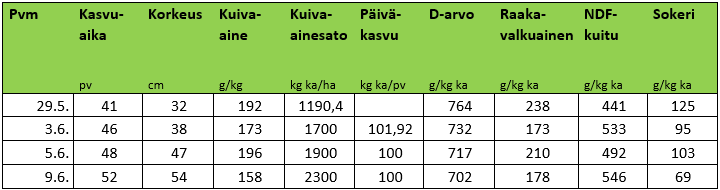 Nurmet kasvavat Pohjanmaalla tasaista päivävauhtia. Pian alkaa korrenkasvu ja kuiva-aineen kertyminen kiihtyy.