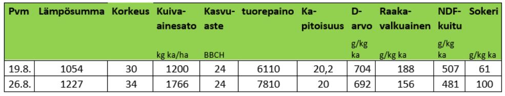 Nurmet lannoitettiin toisen niiton jälkeen YaraMila NK 2 -lannoitteella 180 kg/ha (40 kg N/ha).