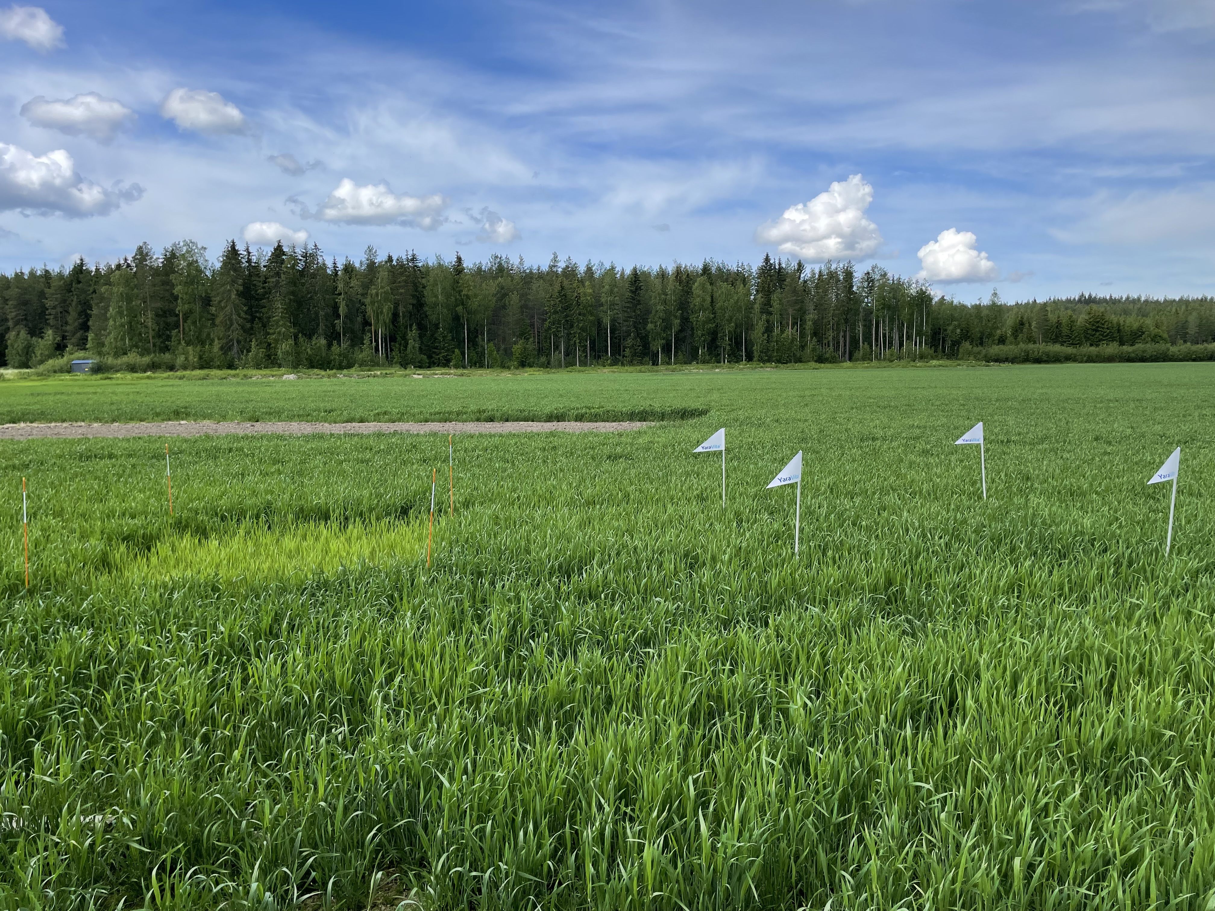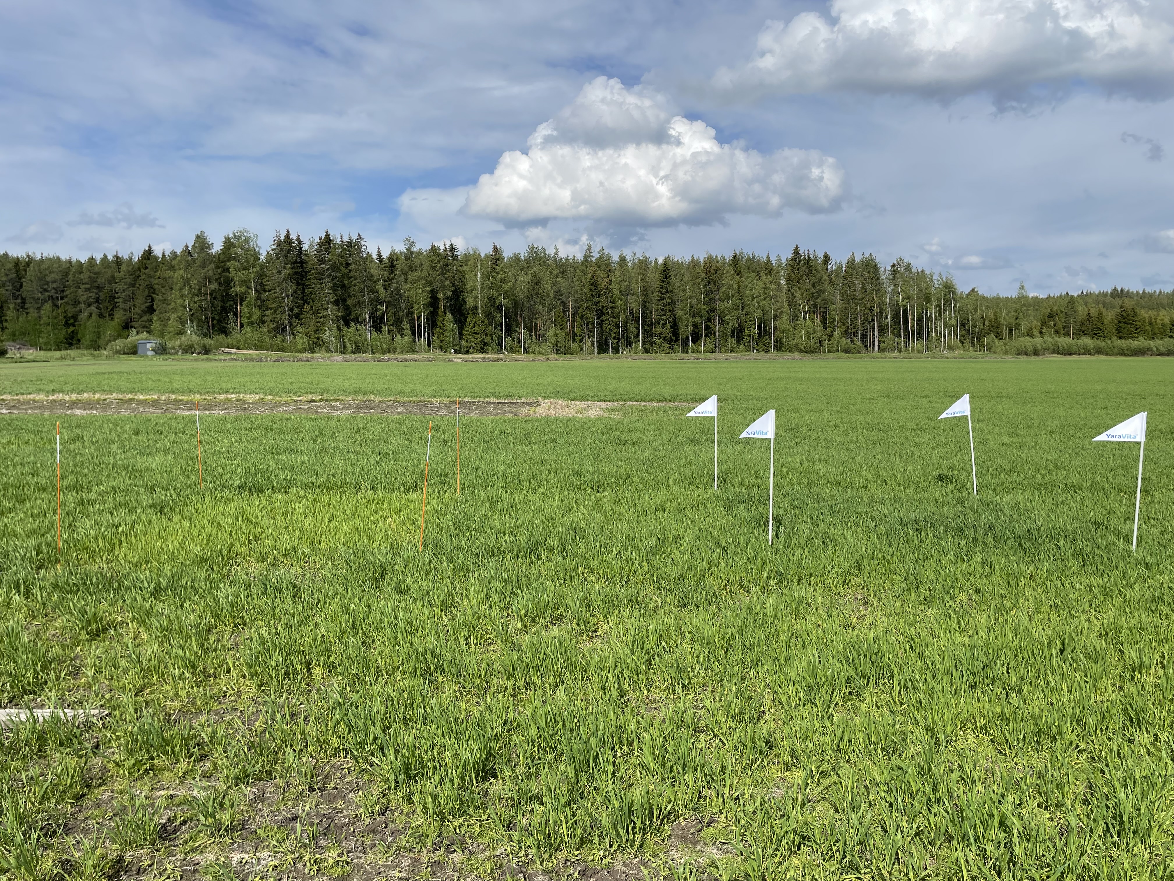 Viime viikon Megalab-kasvustoanalyysitulokset ovat perillä! Kloroottisten lehtien ravinnepuutoksessa näyttäisi olevan kyse sinkistä. Puutos voi mm. alentaa jyvien lukumäärää tähkässä. Puutosta myös pahentaa korkeat pH:t, kylmät ja märät olosuhteet sekä eloperäiset maat. Sinkin puutokseen suositellaan YaraVita-lehtilannoitusta, esim. YaraVita Gramitrel B, YaraVita Mancozin, YaraVita Starphos CMZ tai YaraVita Zintrac -tuotteilla. Joka tapauksessa kasvusto kehittyy huimaa vauhtia ja lisälannoitus on kirittänyt talous- sekä ylilannoitusruutuja hyvin!