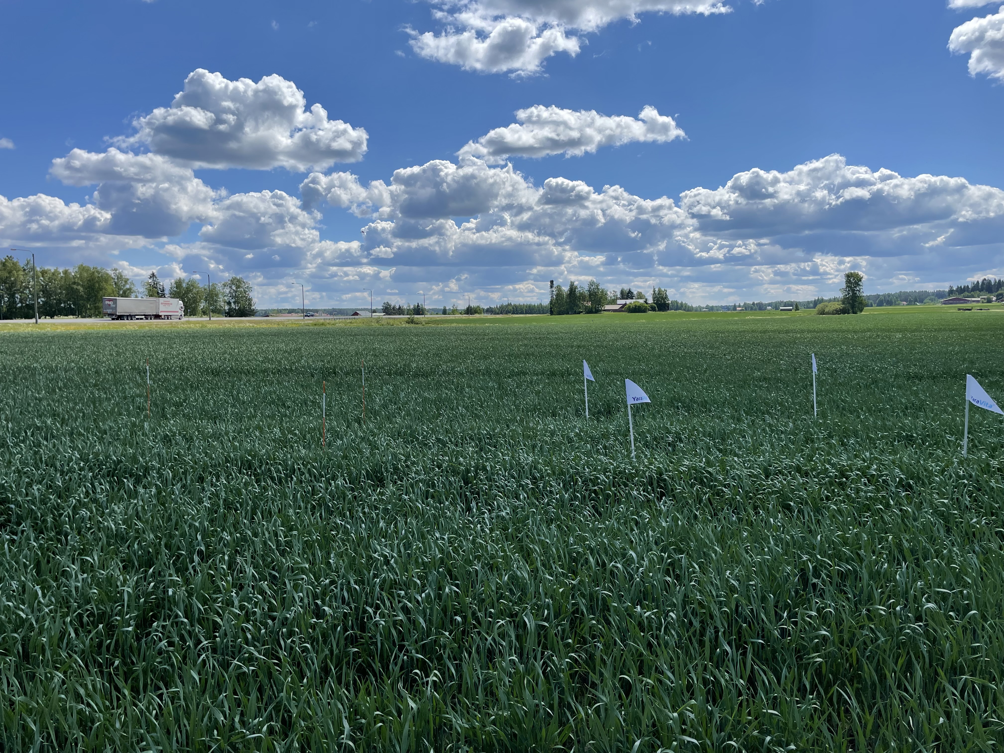 Kurikassa mitataan tänä kesänä Olivia-syysvehnää. Tämä on kylvetty 13. syyskuuta ja esikasvina on herne. Kylvölannoitteena on käytetty YaraMila Y 5 sekä mädätettä. Ensimmäinen mittaus on tehty ja luvut olivat kasvuston tiheyteen nähden yllättävän korkeat.