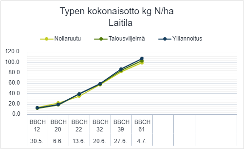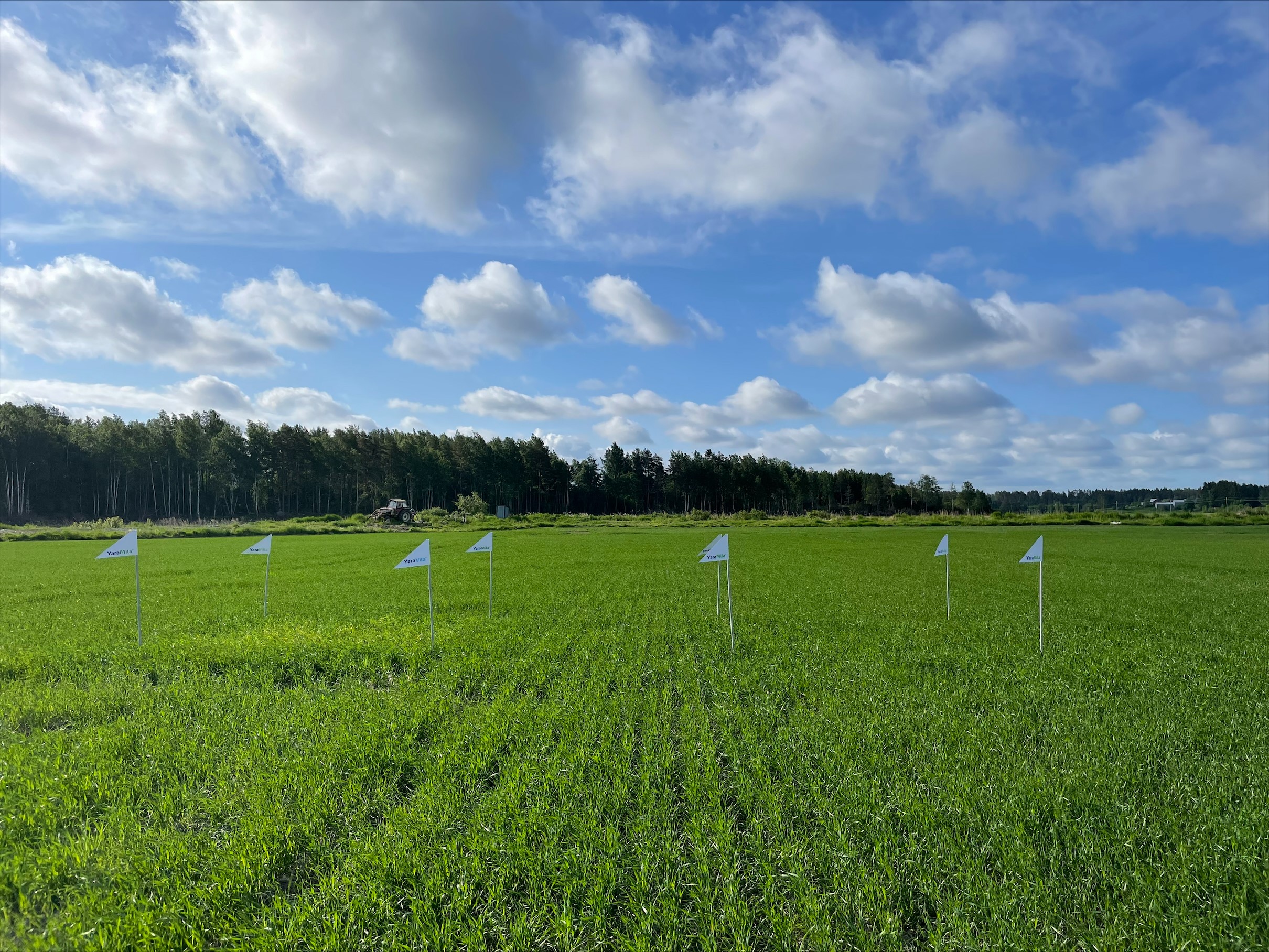 Helmi voi hyvin ja kasvaa kohisten. Viime viikolla otettu kasvustonäyte kertoo, että kaikki on kunnossa. Kasvustosta otettiin laaja Yara Megalab -kasvianalyysi, ja tulos on täydellinen. Kaikkia ravinteita on kasvuun nähden riittävästi kasvissa. Kasvuolosuhteet ovat olleet optimaaliset ja maasta on vapautunut typpeä hyvin kasvuston käyttöön. Ruutujen väliset erot ovat erittäin pieniä.