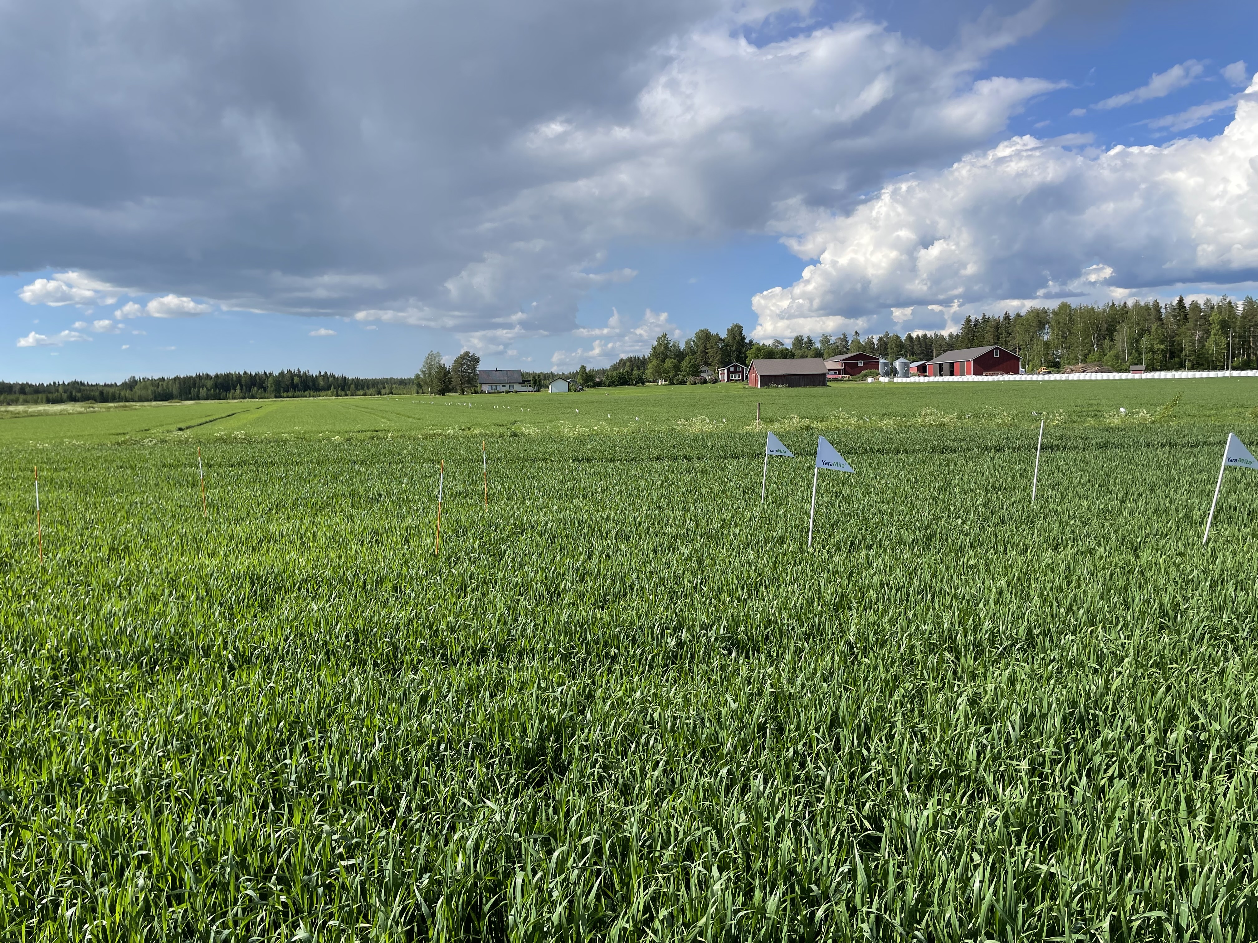 Kosteutta ja lämpöä piisaa! Lapualla olemme jo korrenkasvun alussa. Tässä vaiheessa kasvustoja kannattaa tarkkailla, jotta ravinteet, ja erityisesti typpi, kalium ja rikki, eivät pääse loppumaan. Nollaruudun typenotto on myös kasvussa, mutta talous- sekä ylilannoitusruutu ovat aivan eri vauhdissa! Ylilannoitusruudun typenotto on yli 70 kg jo, vaikka olemme vasta BBCH 31. Loistava vauhti menossa!