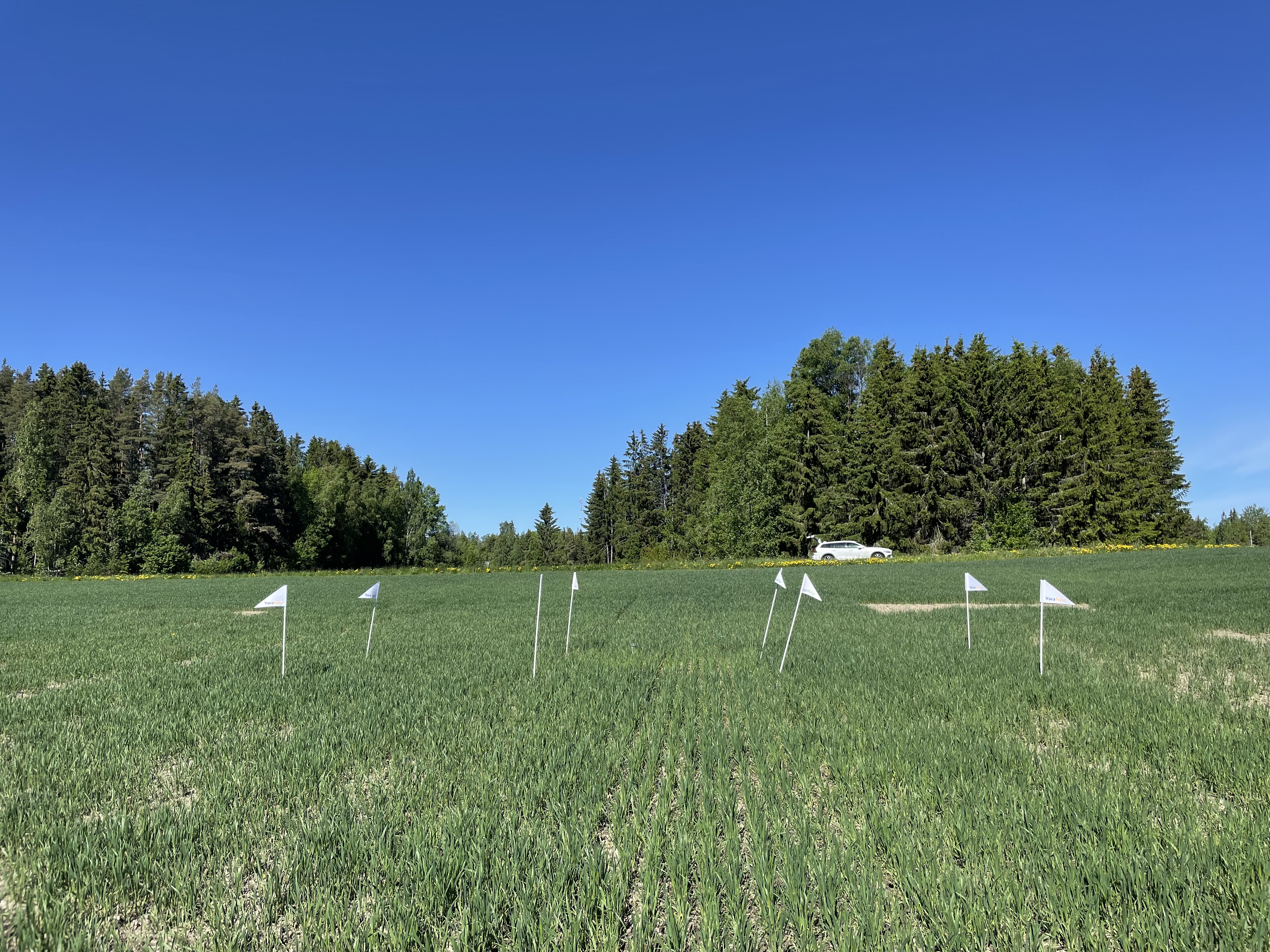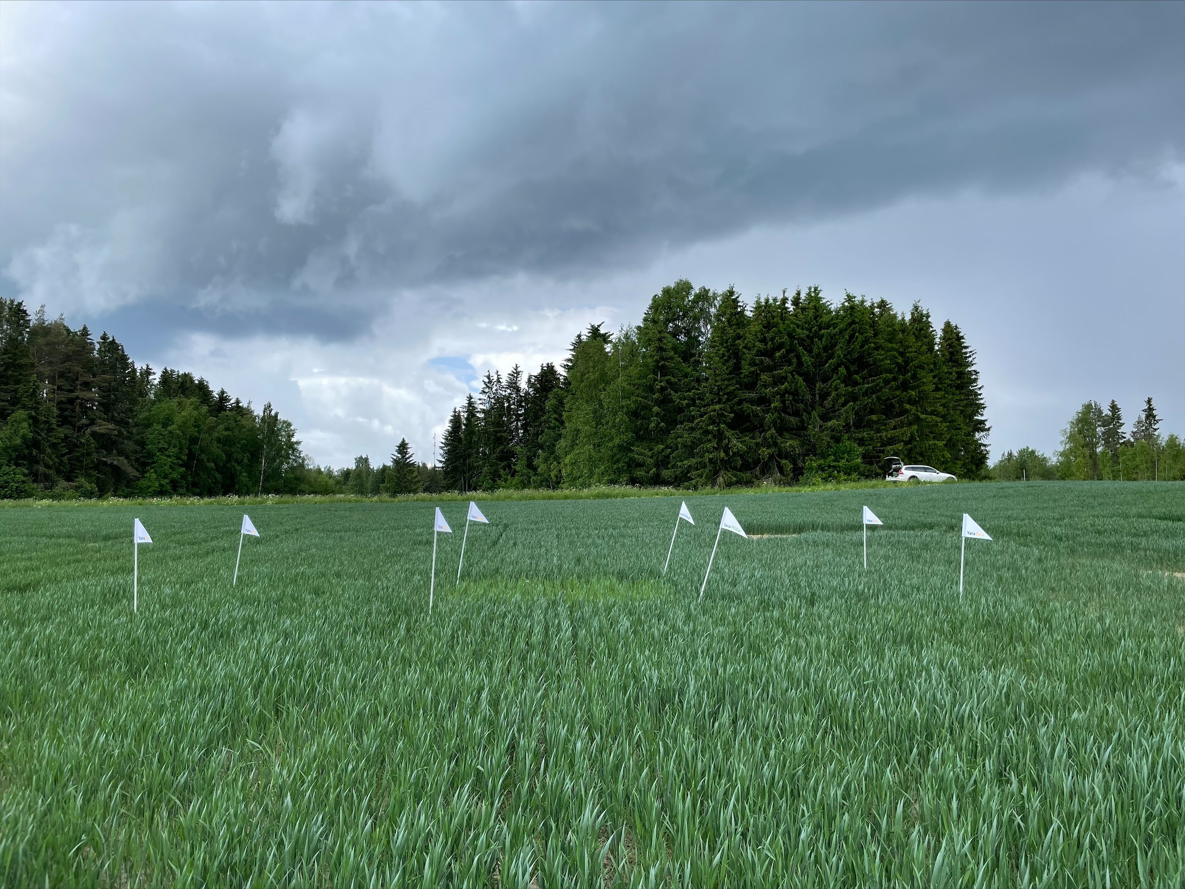 Kasvusto on pensomisvaiheen alussa. Typenotto on vielä maltillista, mutta niin N-Sensorilla kuin myös Atfarmin valokuva-analyysilla ruutujen välille on tullut eroja. Myös silmämäärisesti valokuvasta näkee, että oikealla olevalla ylilannoitusruudulla kasvimassaa on eniten.