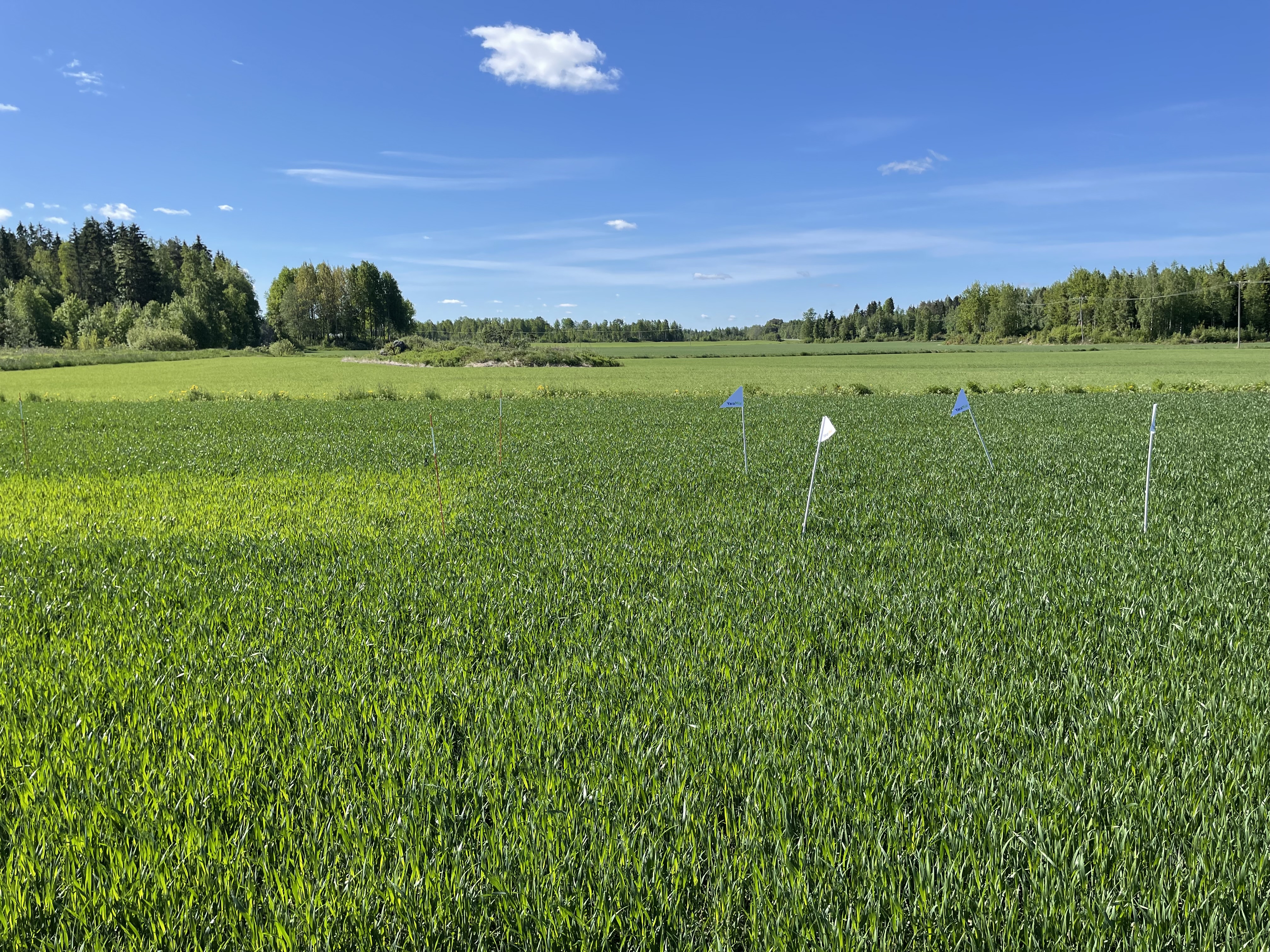 Vöyrin mittauspaikalla pientä kehitystä! Nyt voi myös silmämääräisesti huomata nollaruudun pienemmän typenoton. Ylilannoitusruutua ei vielä ilman Yara N-Sensoria erota. Typenotto on siis kiihtynyt hieman talousviljelmällä ja ylilannoitusruudulla, mutta kylmät ilmat jarruttavat vielä kasvua. Kevään YaraMila NK 1 -lannoitus on ollut tähän asti riittävä, mutta kelien takia suunnitteilla YaraVita Starphos –ruiskutus, jotta kasvusto piristyisi hieman fosforilehtilannoituksesta. Maanlämpötila mittaushetkellä vain 11 astetta, joten alle 30 % maan fosforista kasvien käytössä.