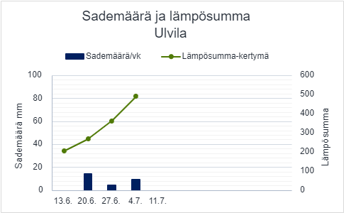 Kasvusto on tasaisessa ja vahvassa kasvussa. Tähkät ovat juuri tulossa esille ja lippulehdet ovat komeita. Kasvusto on ottanut talousviljelmäruudulla typpeä reilut 20 kiloa viikossa. Tämä oli Ulvilan mittauspaikan viimeinen mittaus.
