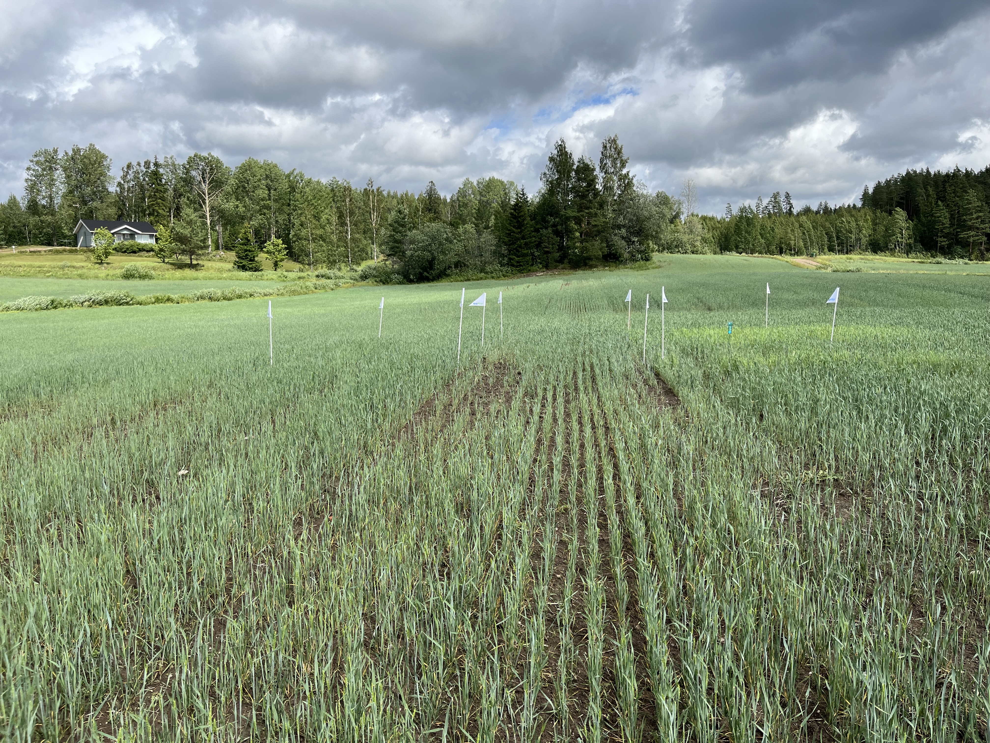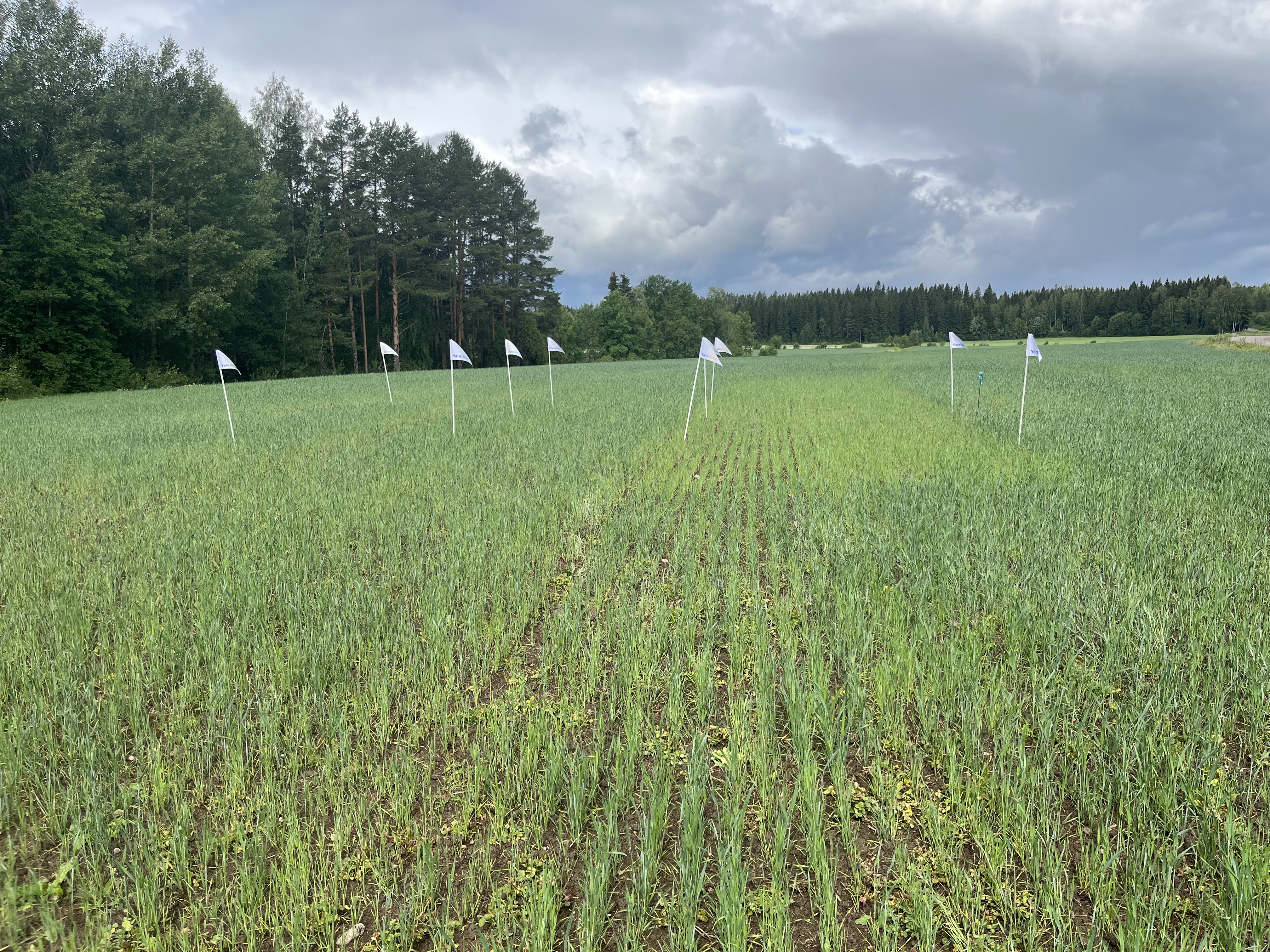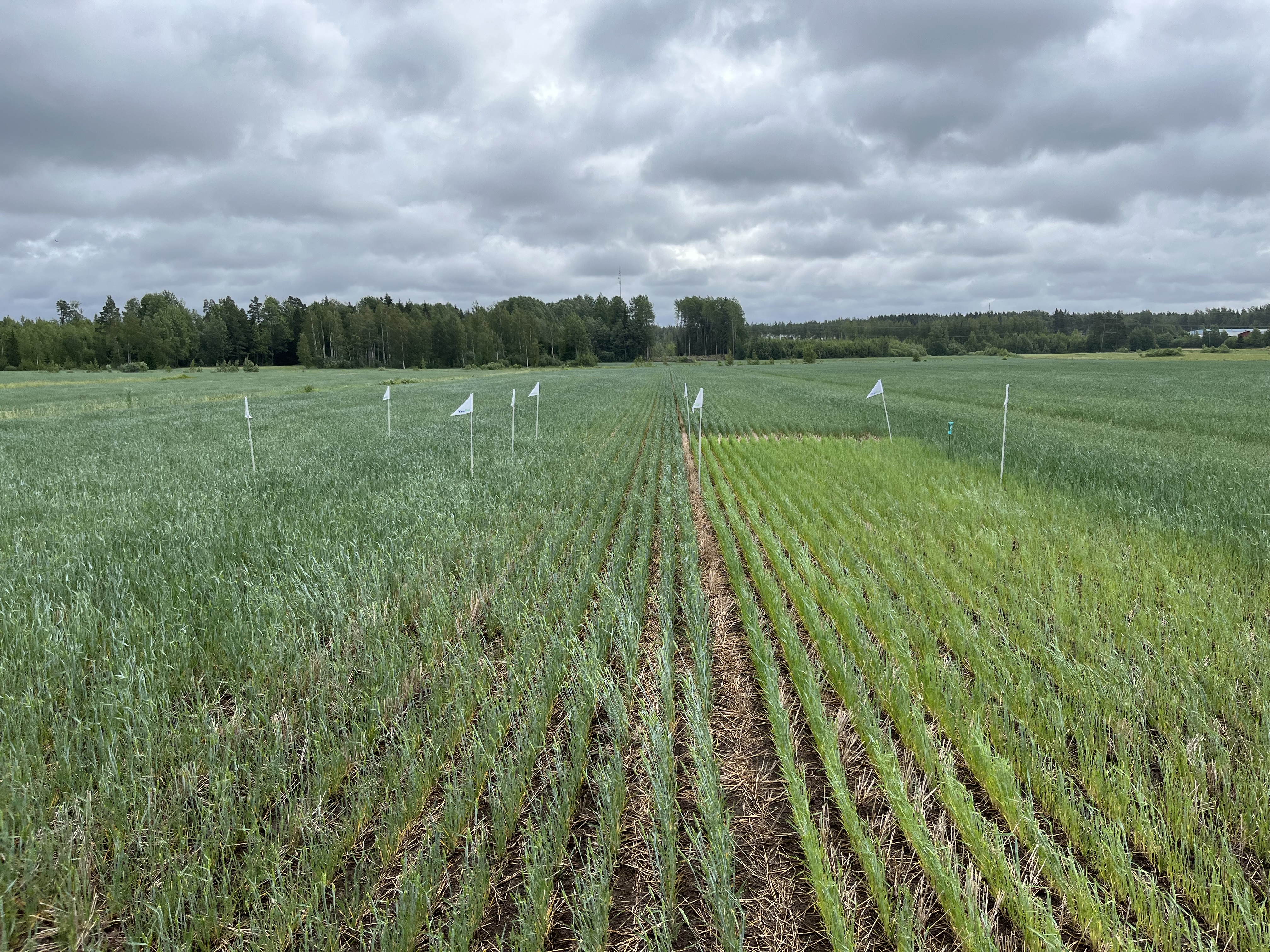 Viikossa vettä oli tullut mittarin täydeltä, eli yli 50mm. Nollaruutu jäänyt kasvussa ja kehityksessä selvästi jälkeen. Kasvusto jää harvaksi kasvukauden kuivuudesta johtuen. Täälläkin saatiin vihdoin kaikki ruudut mitattua ja isoja eroja havaittavissa pienillä alueilla. Kasvusto alkaa hiljalleen työntämään tähkää ulos joten ainakin ensi viikolla mitataan vielä kertaalleen.