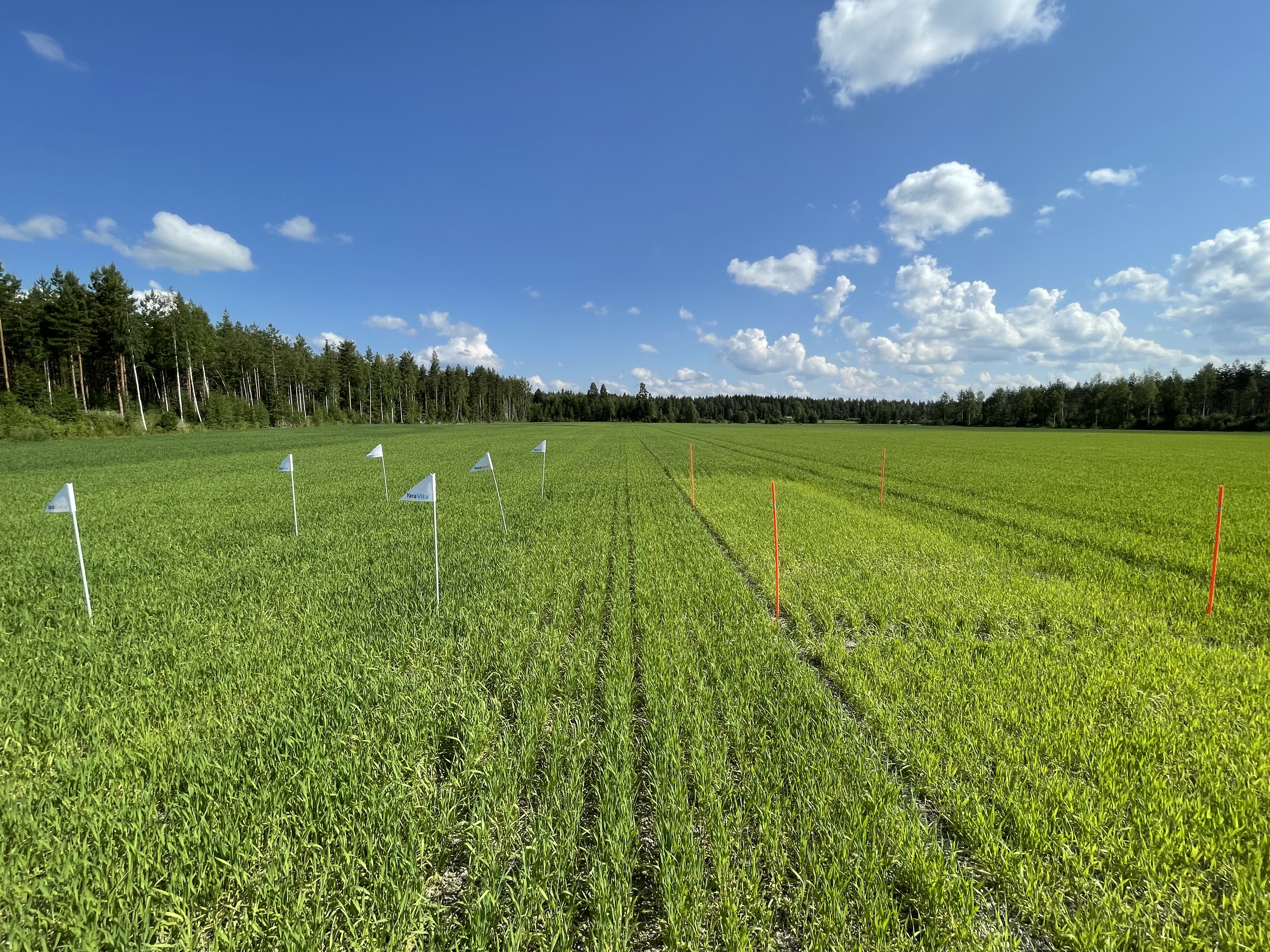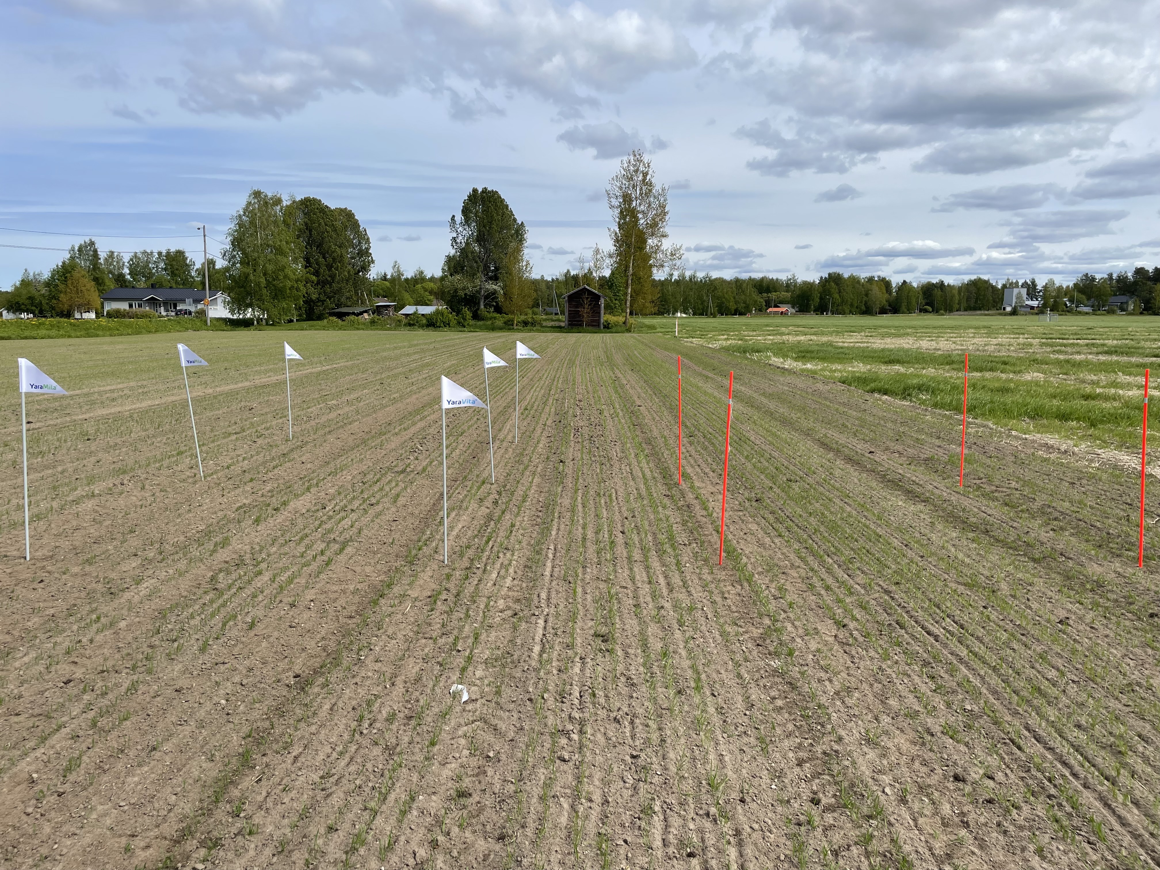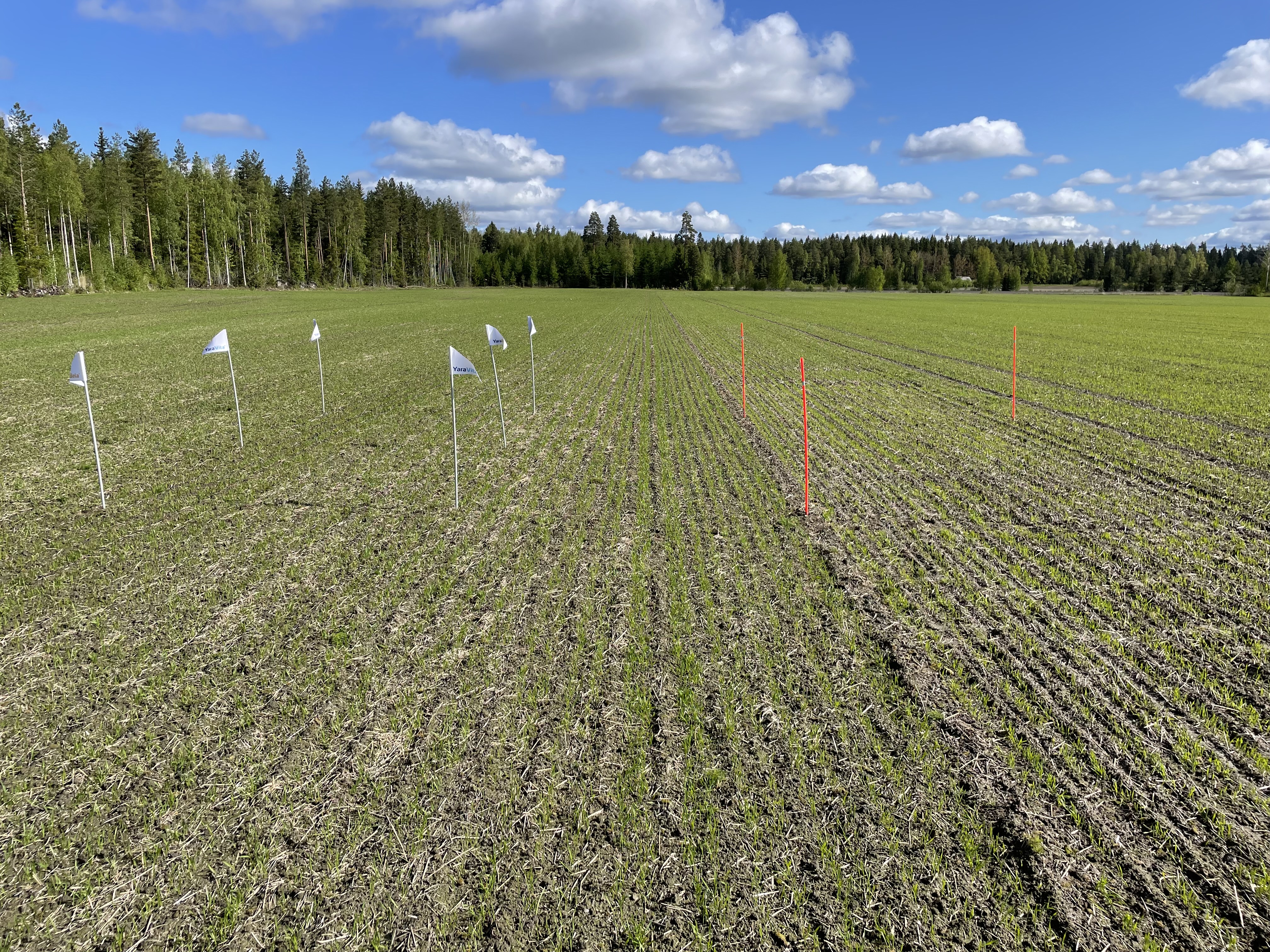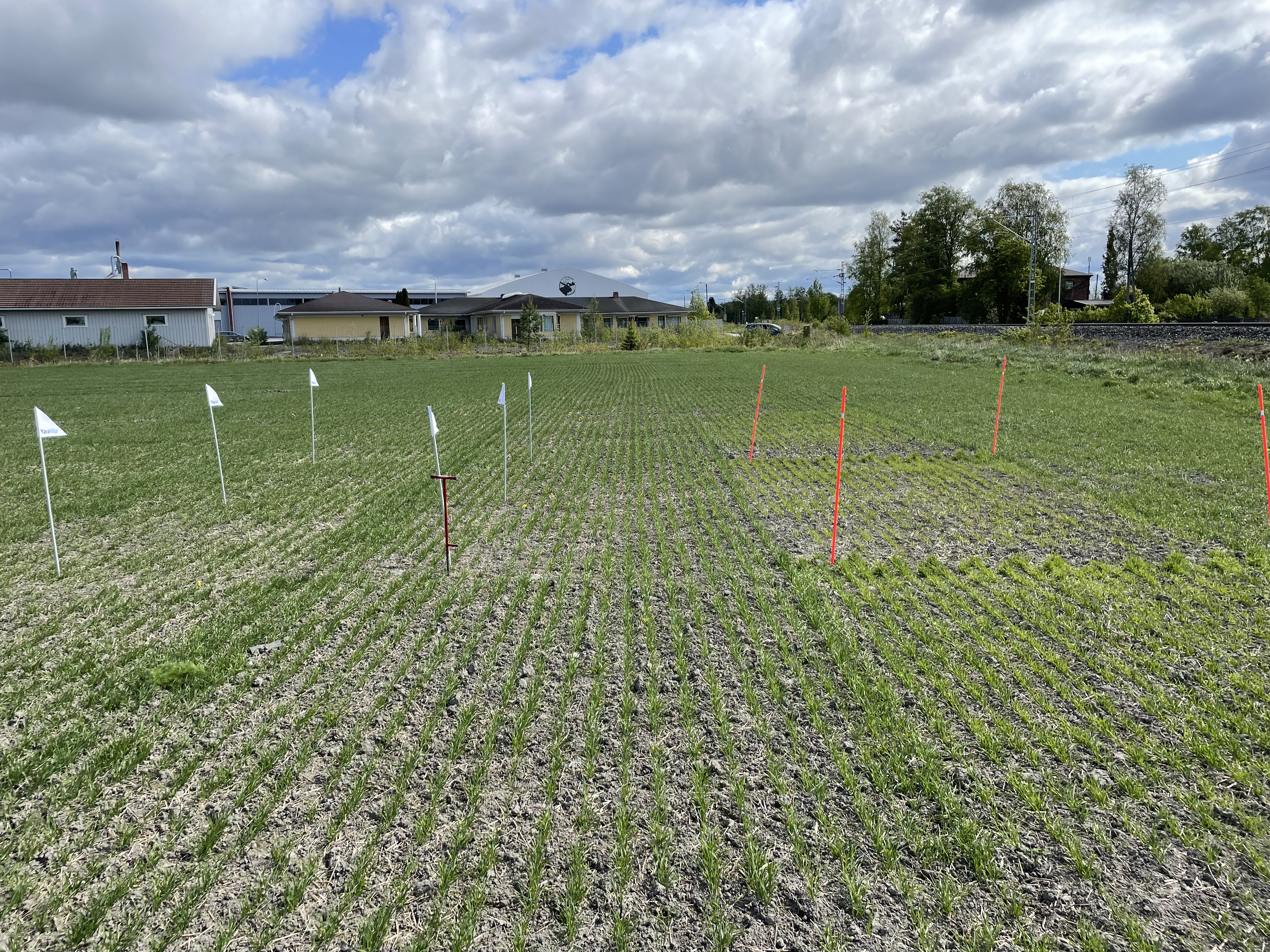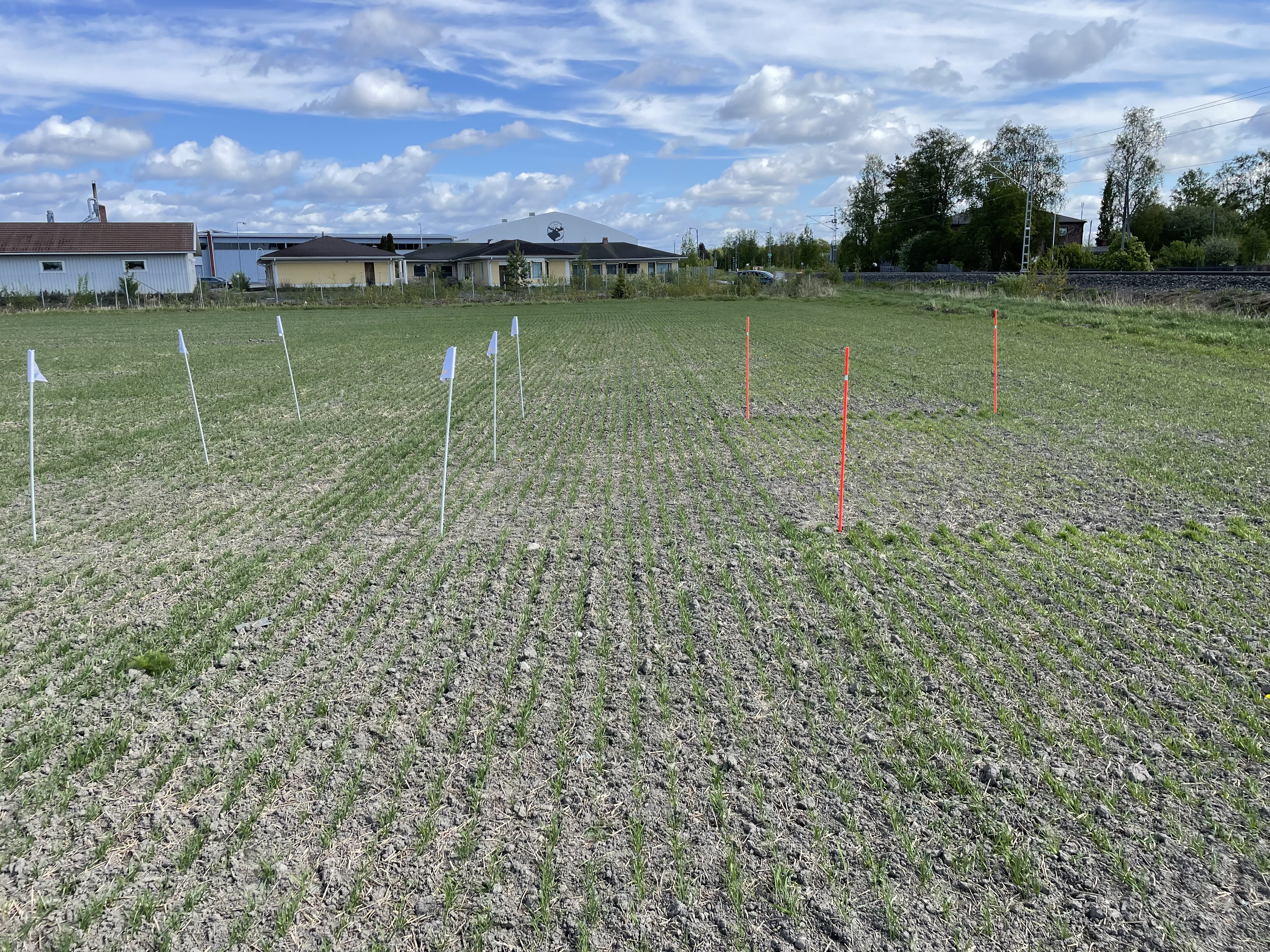 Ruutujen sijainti muuttuu! Selvisi että ylilannoitusruutu oli väärässä paikassa, joten ruutujen sijainti muuttuu. Vehnä on orastunut ja typenotto on mitattavissa, toki vielä ei isoja määriä typpeä sitoutunut kasvustoon.