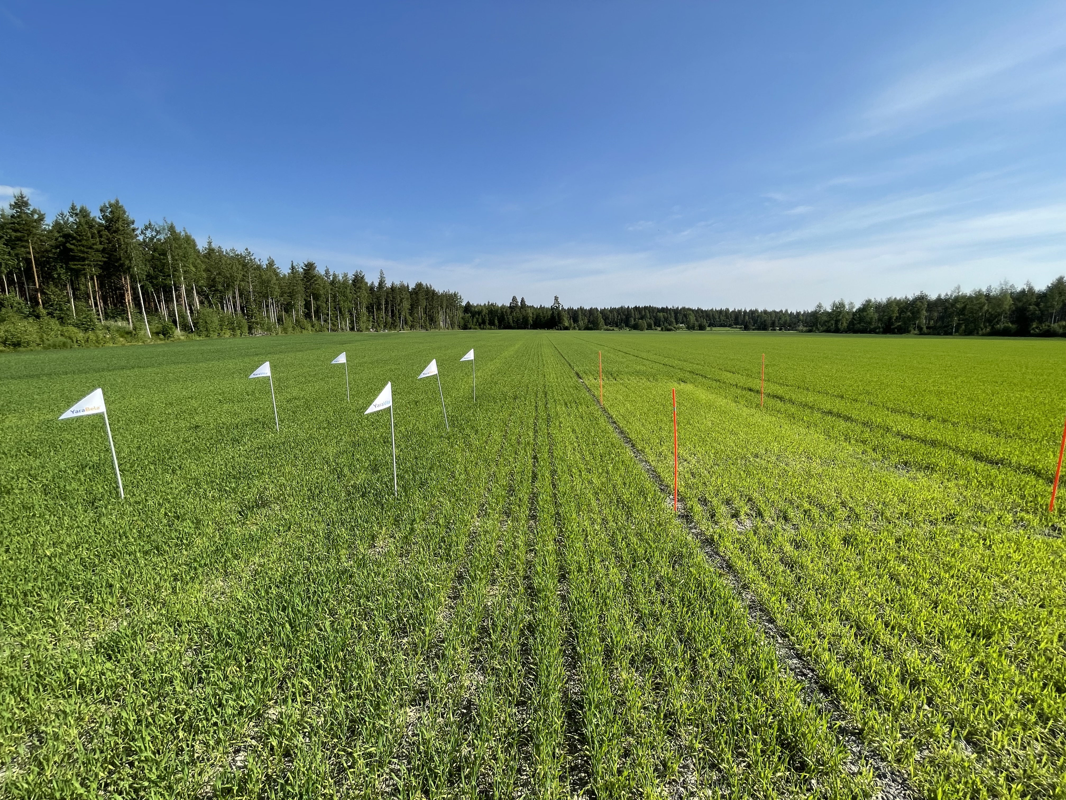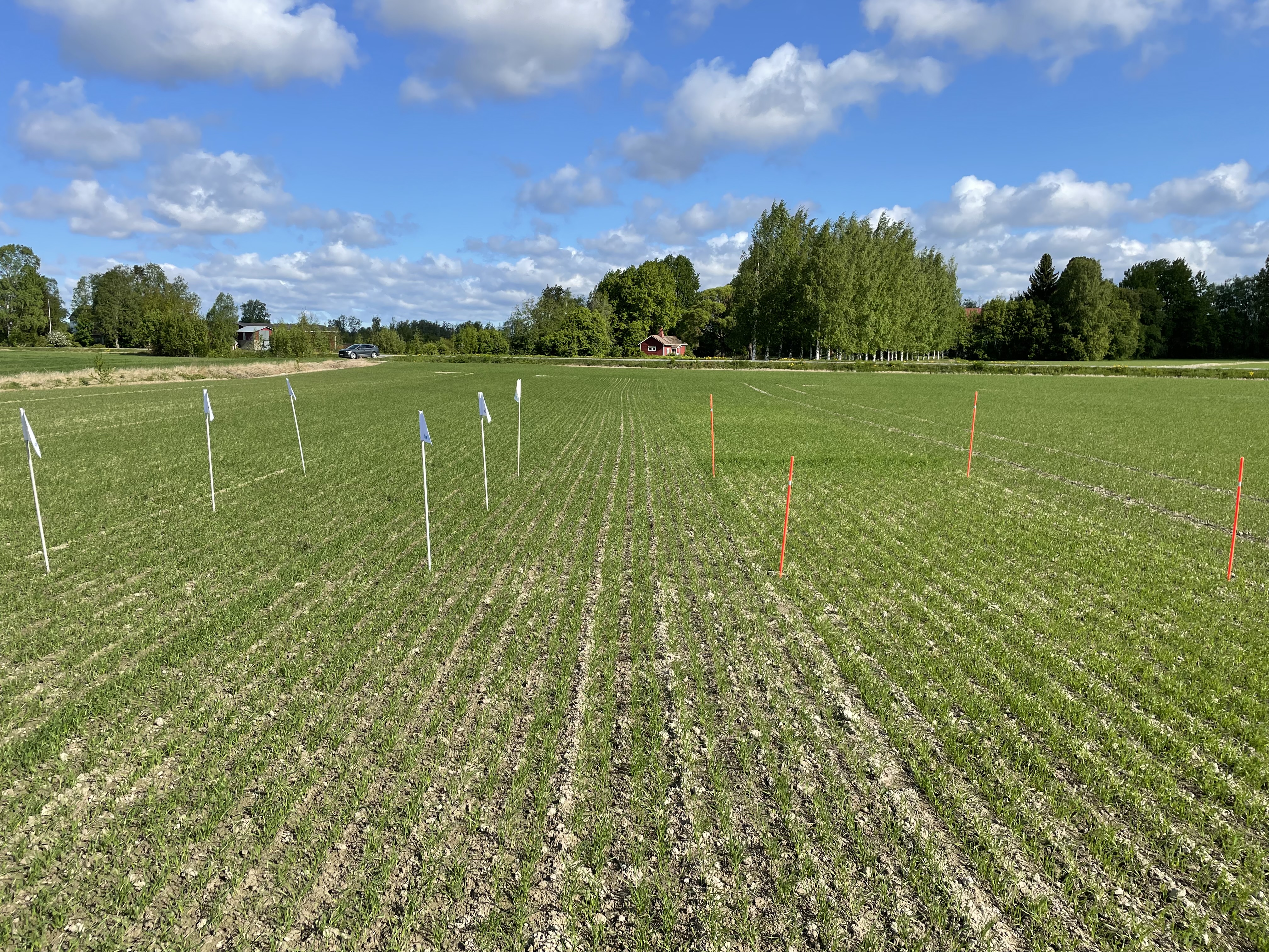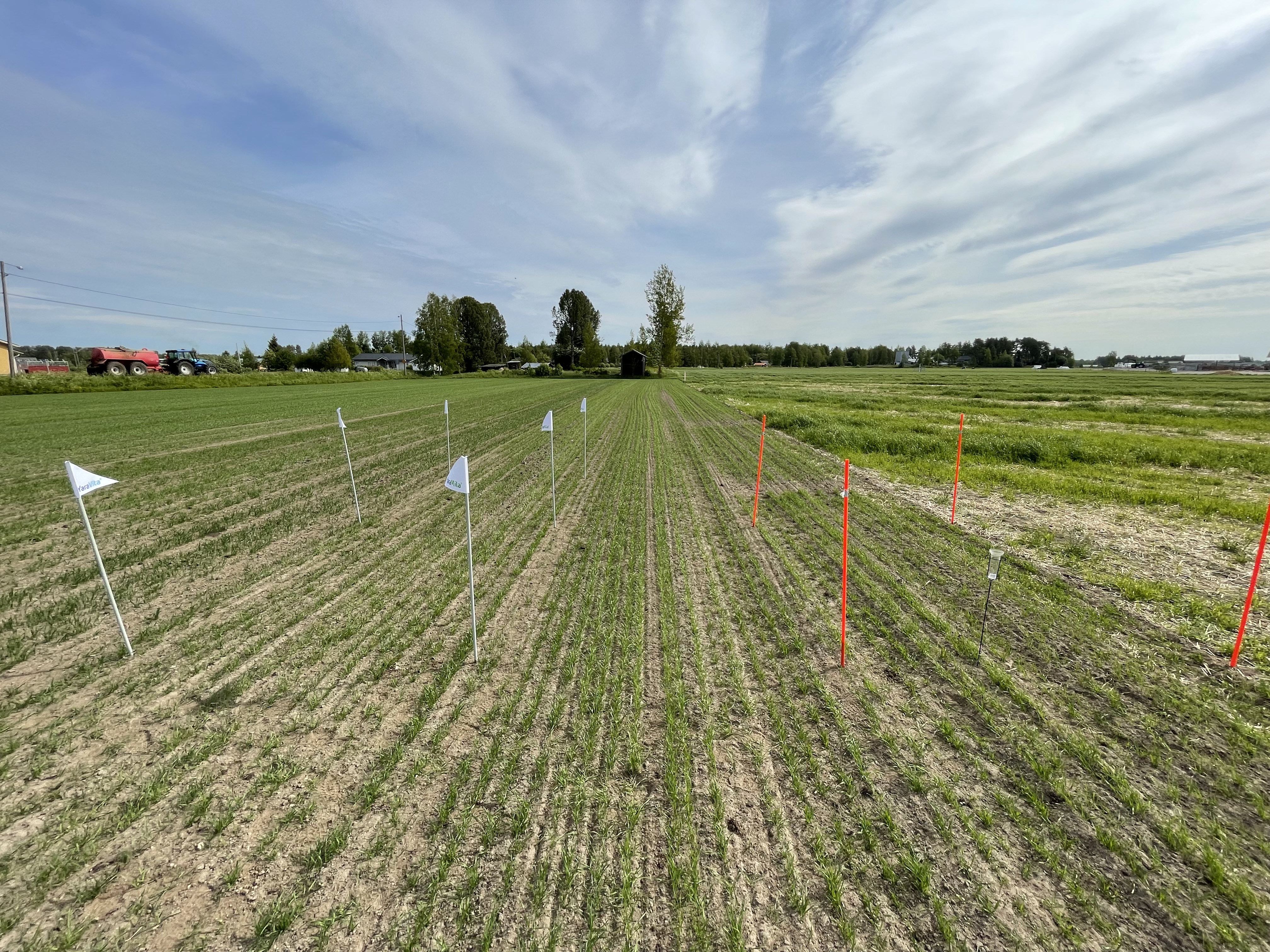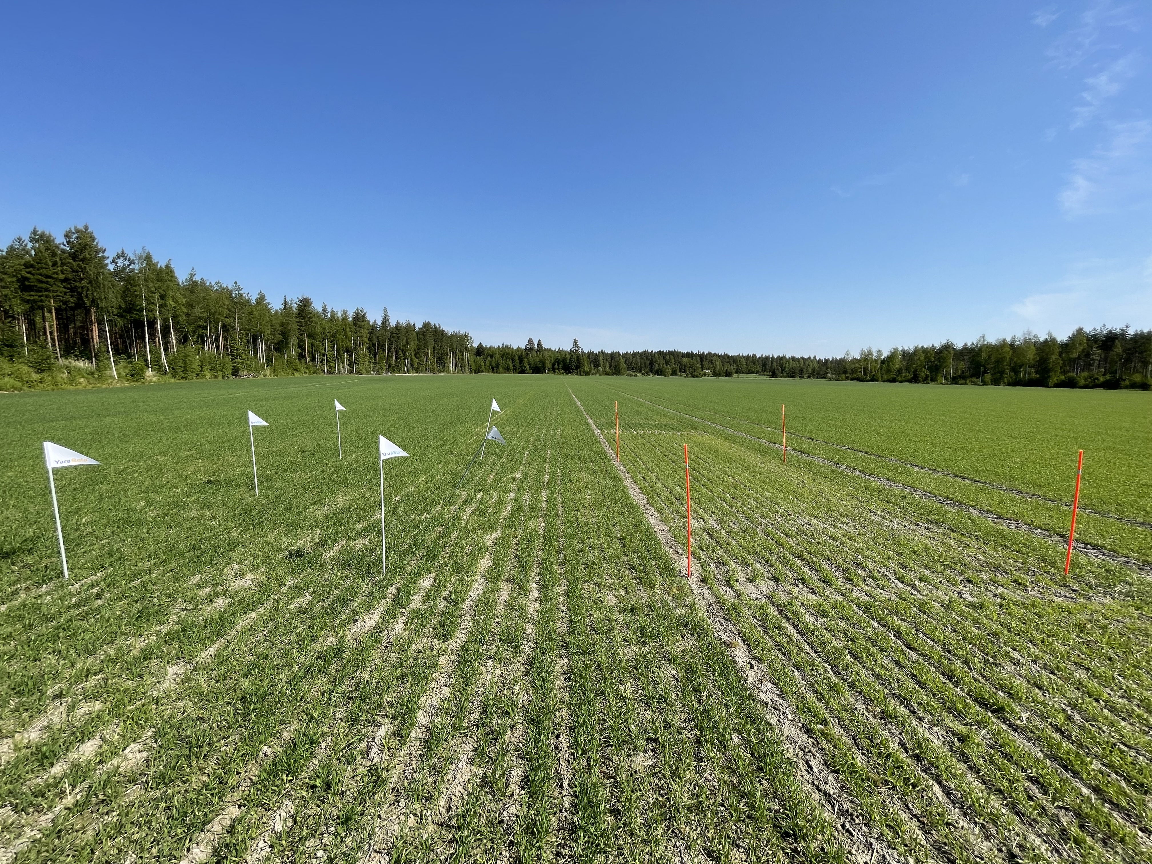 Ruutujen sijainti muuttuu! Selvisi että ylilannoitusruutu oli väärässä paikassa, joten ruutujen sijainti muuttuu. Vehnä on orastunut ja typenotto on mitattavissa, toki vielä ei isoja määriä typpeä sitoutunut kasvustoon.
