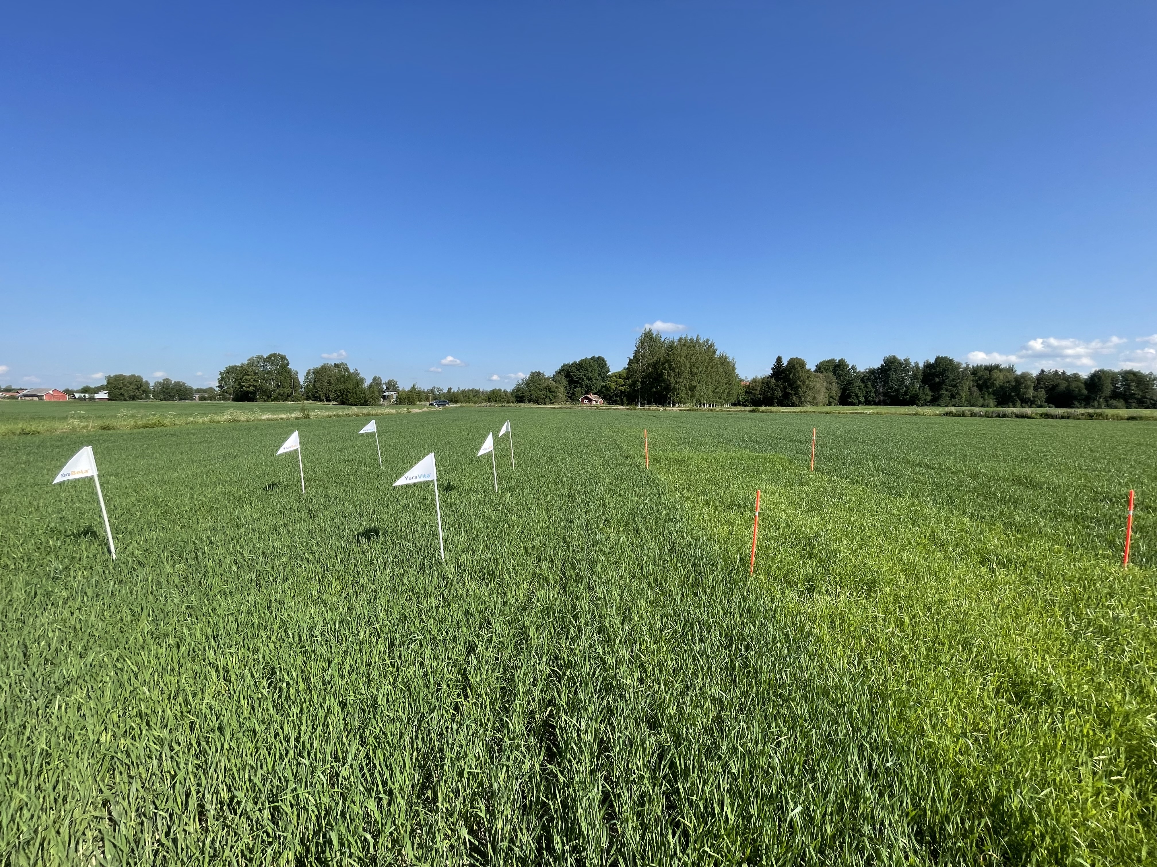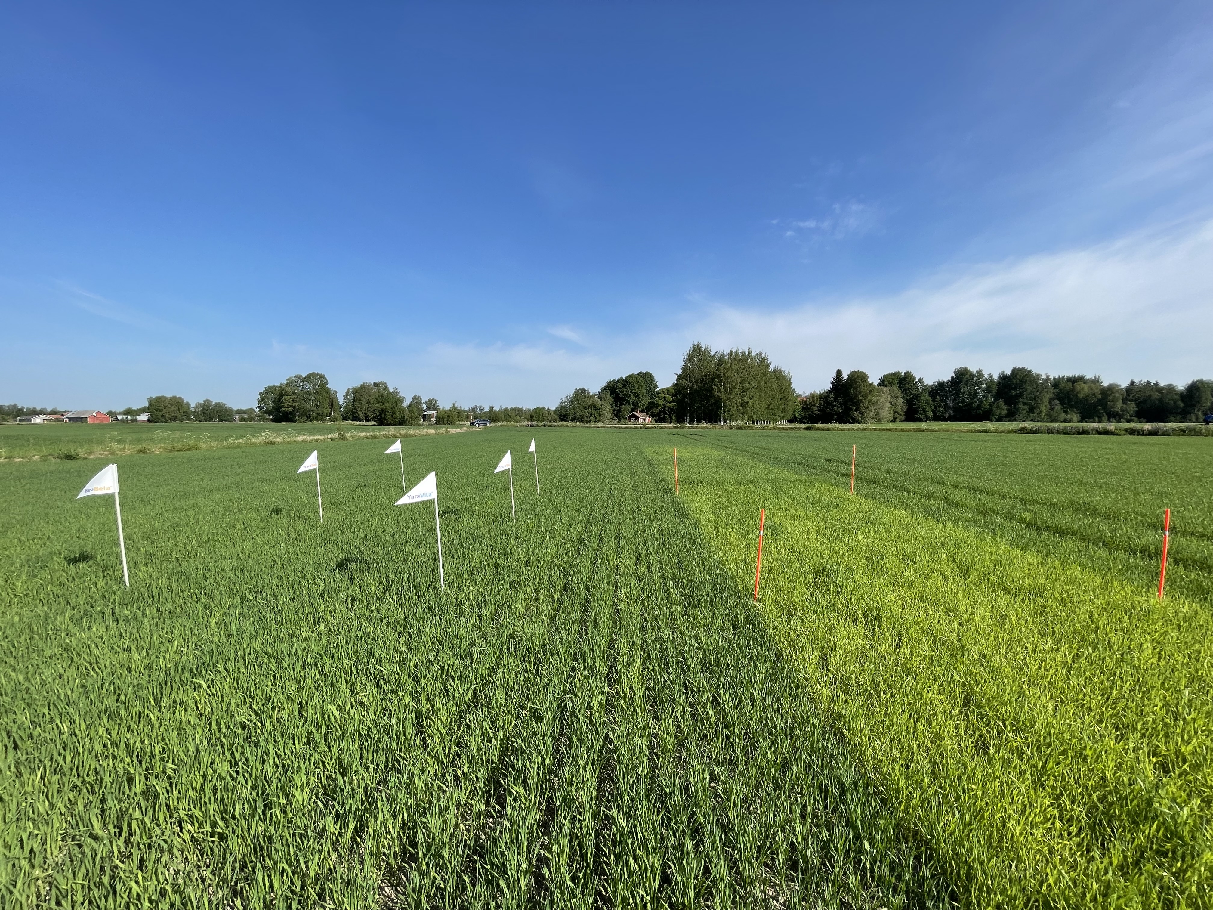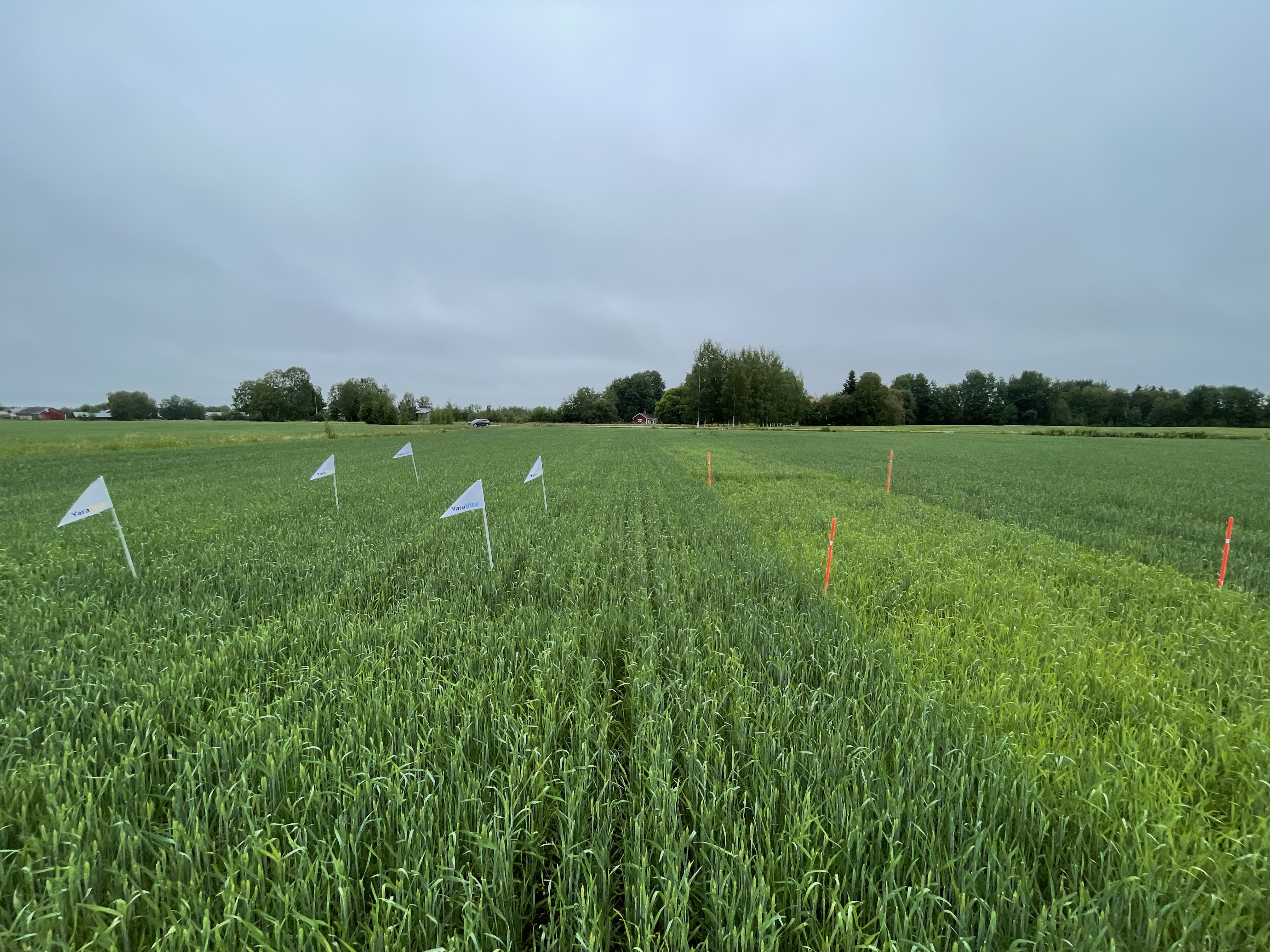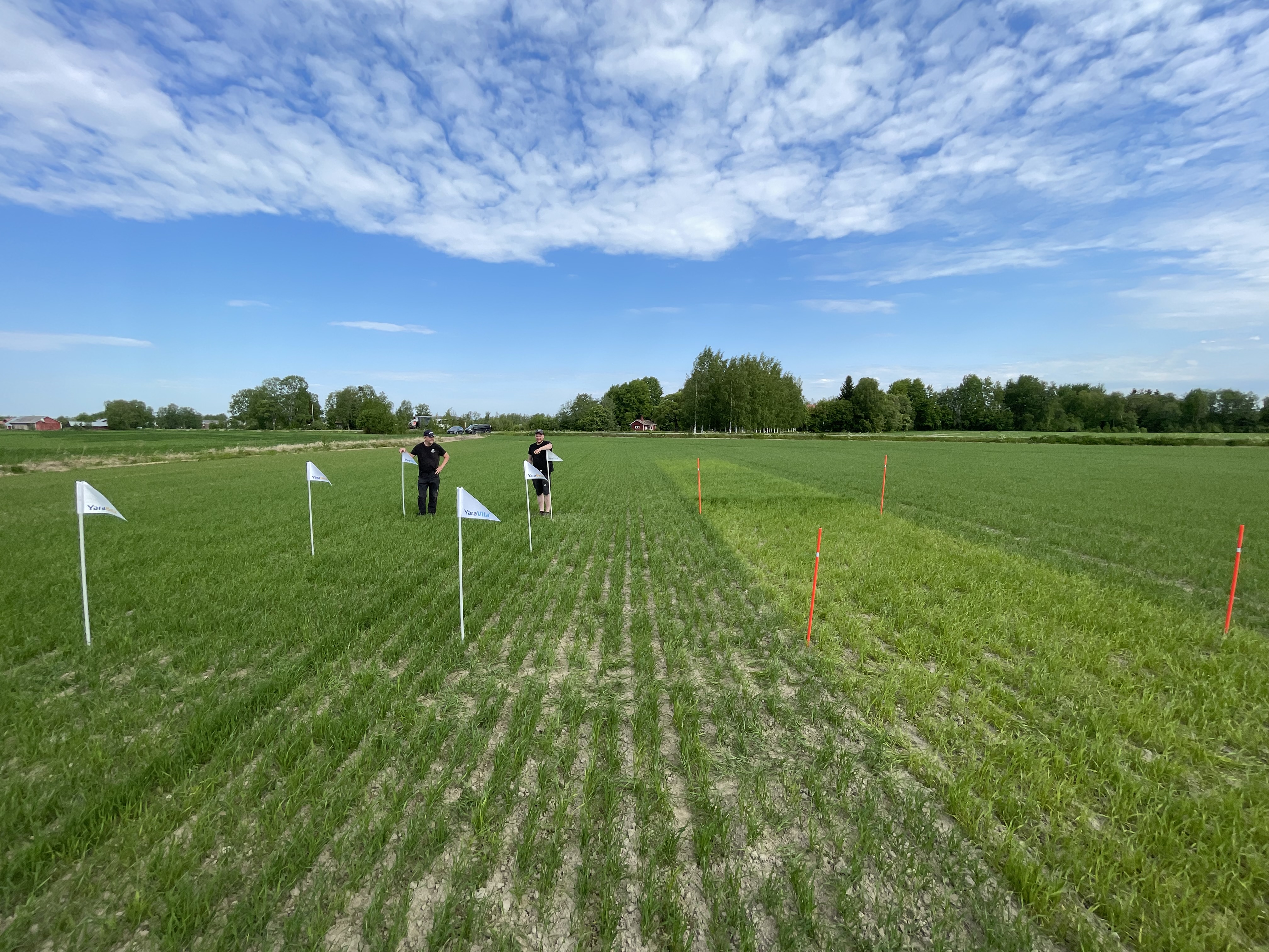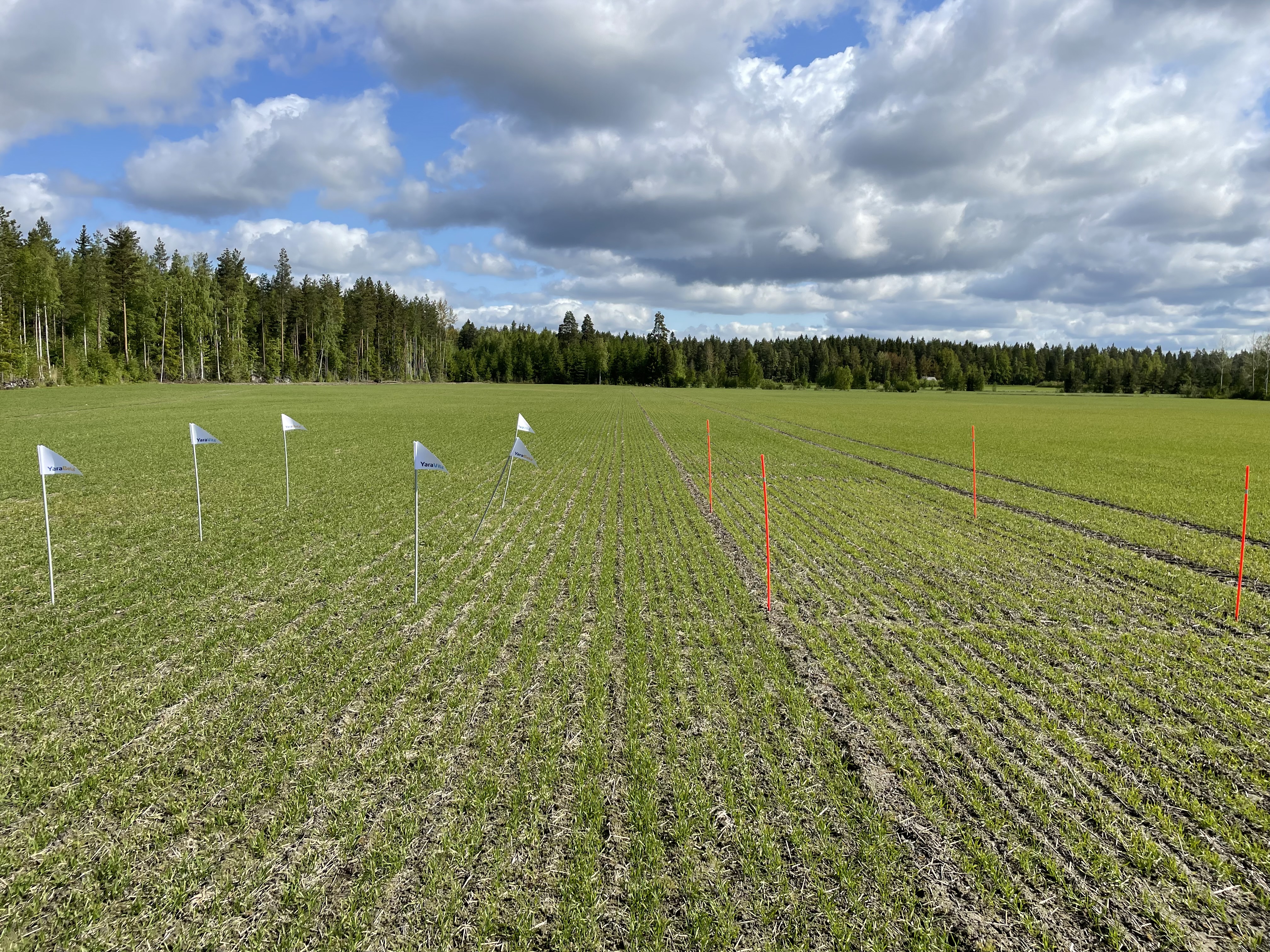 Ruutujen sijainti muuttuu! Selvisi että ylilannoitusruutu oli väärässä paikassa, joten ruutujen sijainti muuttuu. Vehnä on orastunut ja typenotto on mitattavissa, toki vielä ei isoja määriä typpeä sitoutunut kasvustoon.