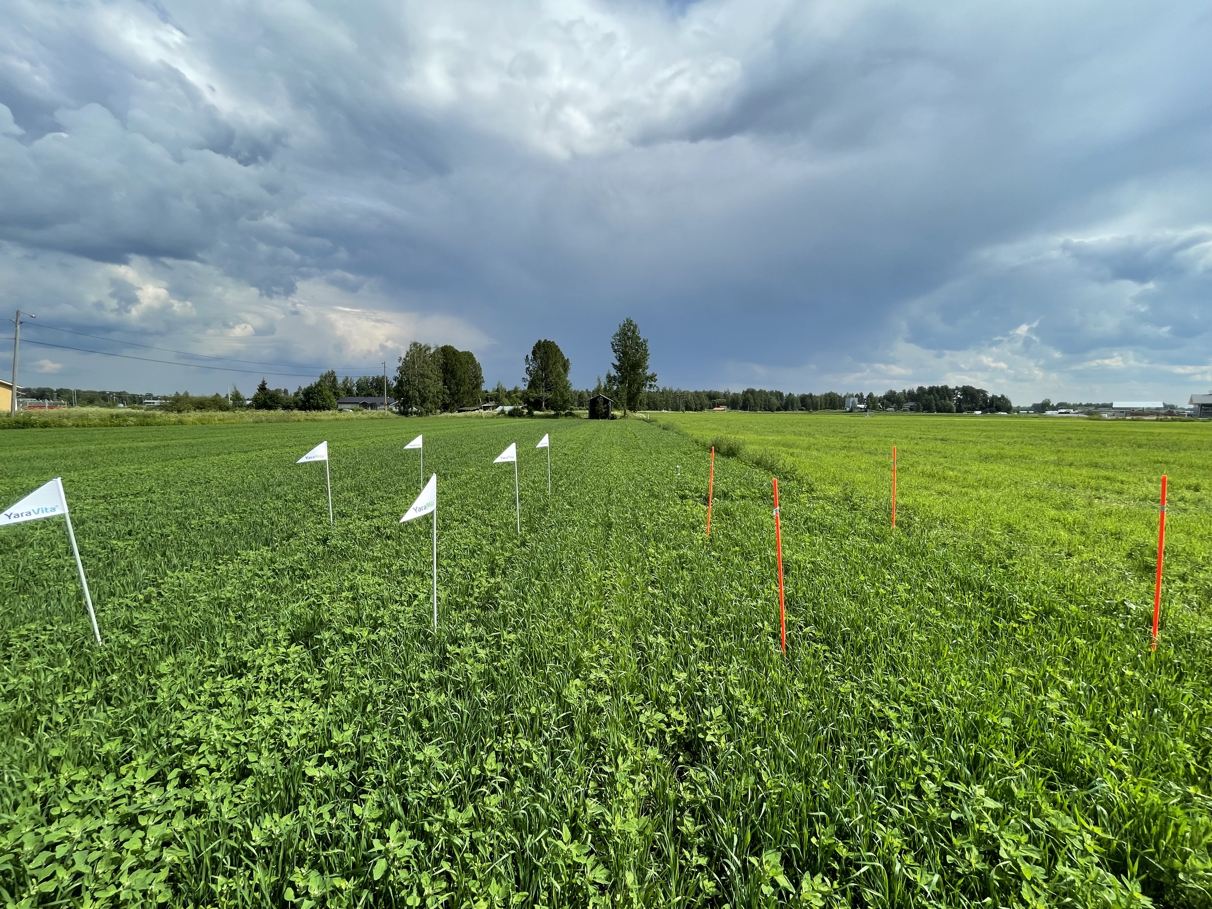 Vettä tullut viikon aikana 23 mm, jippii! Ja sen näkee myös kasvustossa typenottona sekä rikkakasvien määrässä. Jauhosavikkaa on ruuduilla todella paljon, jopa niin paljon että se voi vaikuttaa mittaustulokseen.