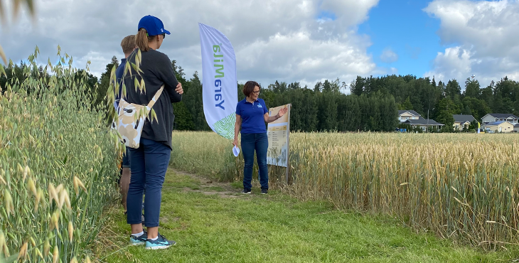 Yara Kotkaniemen koeruutupäivässä tiistaina 11.8. esiteltiin kuluvan kasvukauden havaintoja tutkimusaseman koeruuduilta. Käsiteltäviä aiheita olivat ravinnetasapainon tärkeys kasvuston kehitykselle, syysviljojen typenkäyttö, typpilannoituksen tarkentamisen työkalut, kevätviljojen valkuaistavoitteen vaikutus lannoitestrategiaan ja lajikkeiden väliset värierot.
