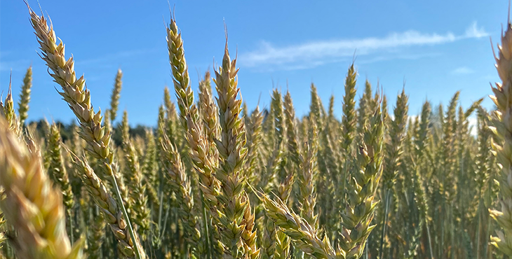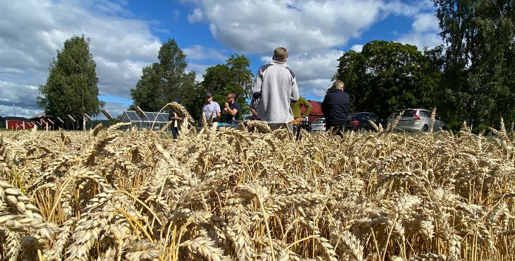 Yara Kotkaniemen tutkimusaseman johtaja Juha Liespuun esittelemässä syysvehnäkokeessa on tehty eri koeruuduille hyvin erilaisia lannoitusratkaisuja, joiden toimivuutta kasvukauden aikana seurattiin Yaran kehittämillä mittareilla.
