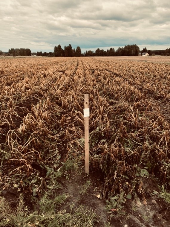 Kuva 2. Pakkasen tappamaa varsistoa kokeen nostossa 9.9.2022
