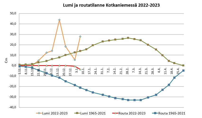 Viikon aikana pakkaset ovat lisänneet routaa 3 cm. Lunta on viikossa satanut lisää runsaat 20 cm.